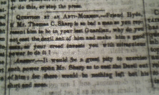 The funniest thing I found was definitely this short letter to the editor, and Orson Hyde’s snappy comeback. Orson Hyde was certainly a character, that is for sure.