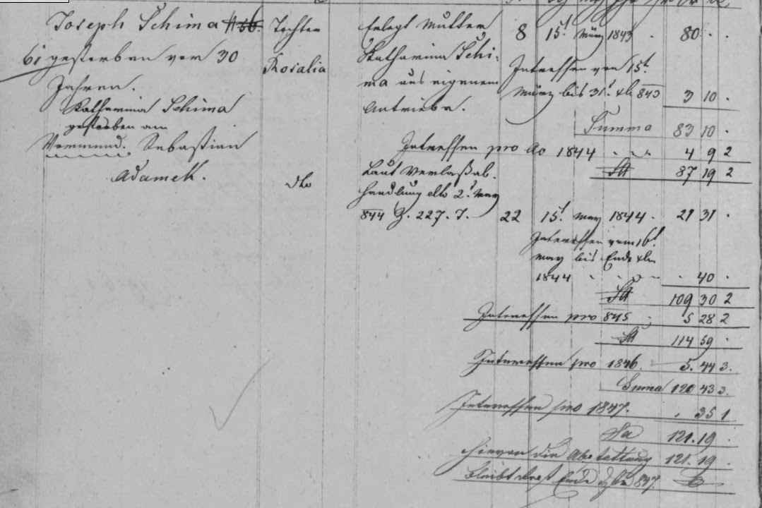 “Verlassabhandlung – I believe it was a formal process in which the property of the deceased was assessed and divided among heirs. Mother most probably have not left a will and having only one child and no husband the all what was left (and not much) went to the daughter. And Rosalia being 18 years old was probably old enough and probably in service somewhere so she did not need a guardian (especially when there was not much property). Her accounts and small sum of money were protected by the office.”